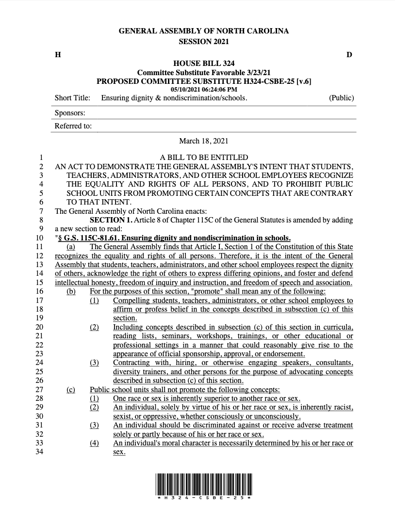 Update: State legislators in North Carolina have introduced a bill banning critical race theory. There may yet be hope for the Tarheel state.